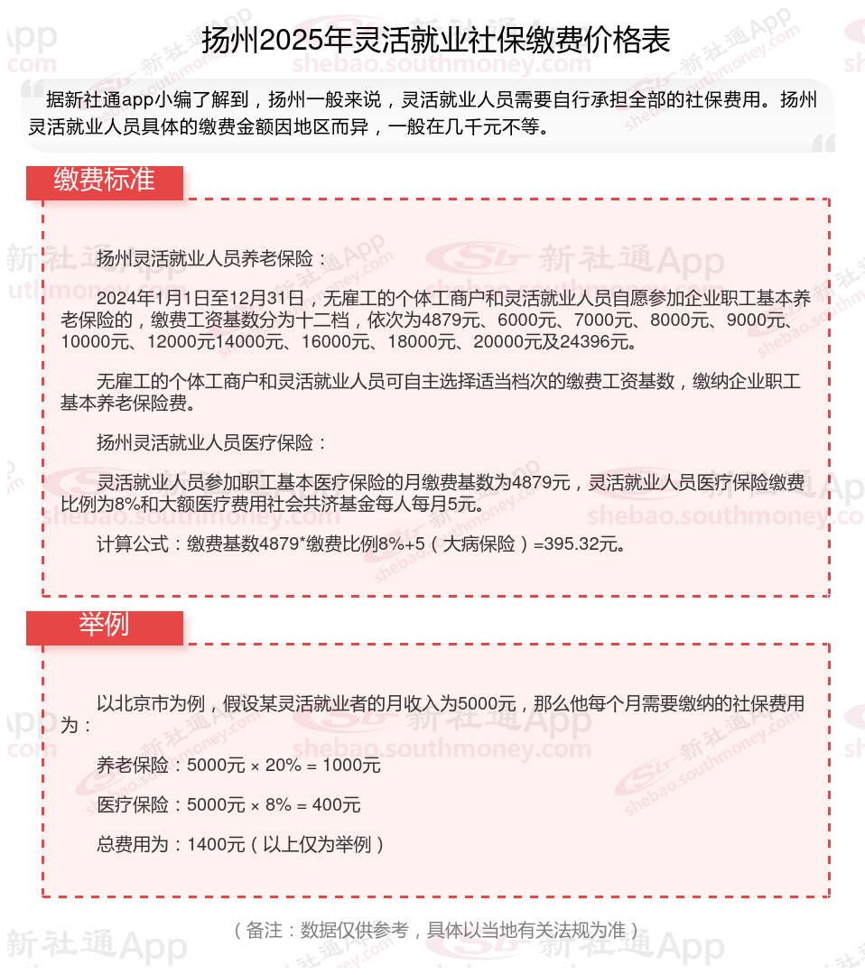 那么,灵活就业人员社保是多少钱一个月多少钱?根据新社通app-社保缴费查询工具提供的2025社保缴费标准详情数据: