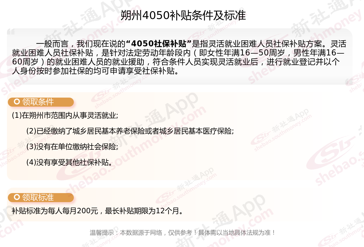 2025朔州4050补贴主要针对的是年龄在40岁以上的女性和50岁以上的男性,这些人群通常因为年龄较大而面临就业困难。