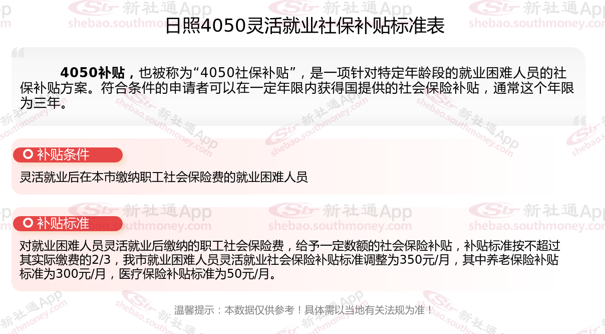二、2025年日照4050社保补贴标准及条件,最新如下: