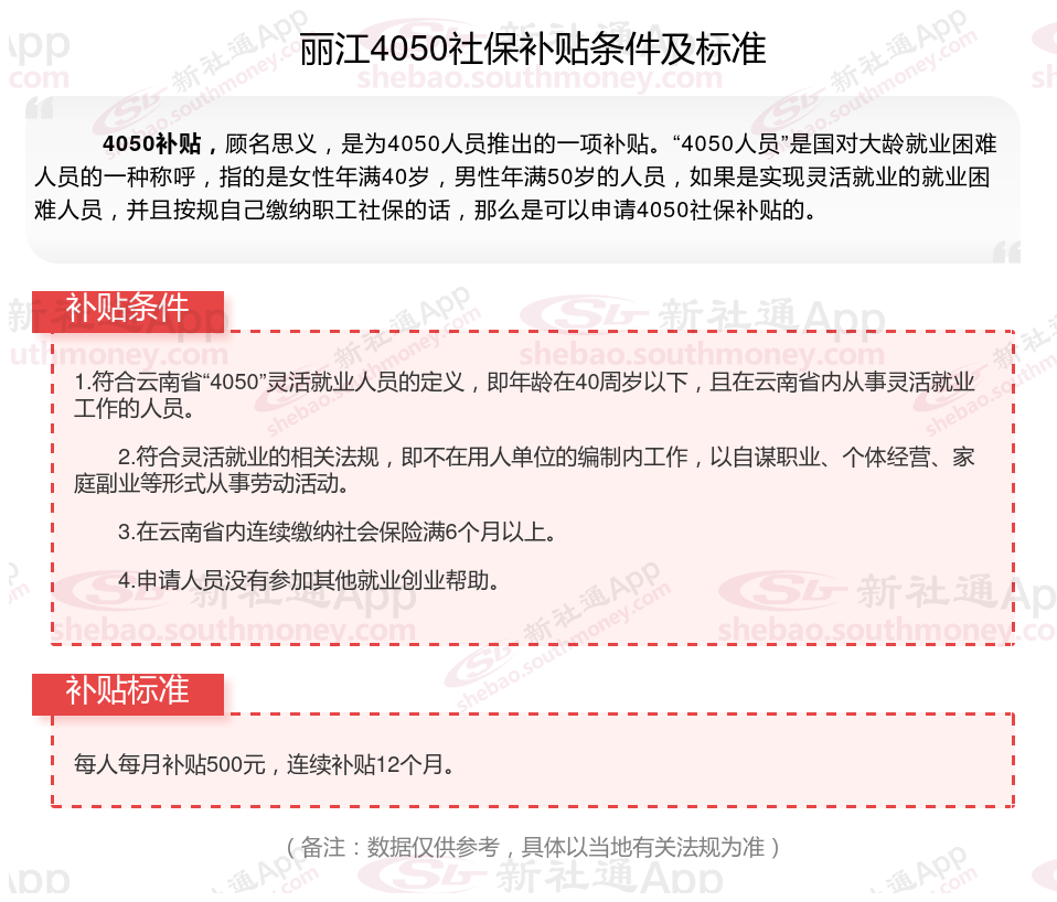 一、2023-2024年丽江4050社保补贴标准及条件,最新如下