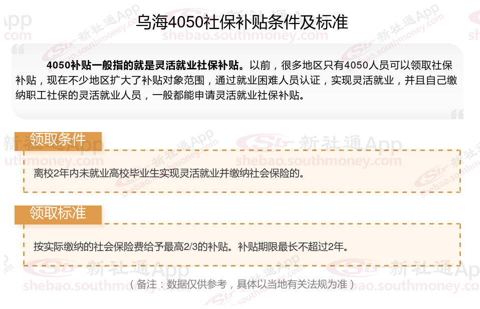 二、乌海4050社保补贴标准及条件(2025年最新)