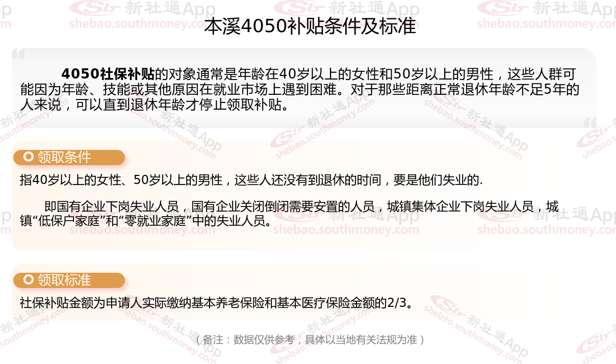 二、本溪4050社保补贴标准及条件2025年,最新如下