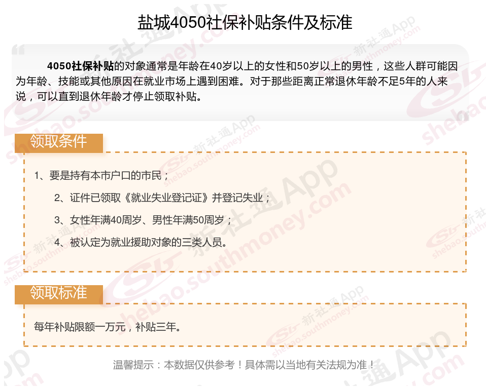 二、盐城4050社保补贴标准及条件2025年最新消息
