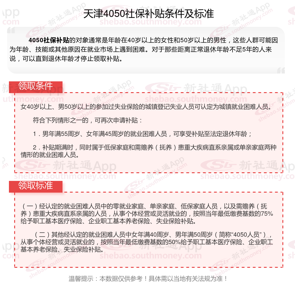 4050社保补贴标准据新社通app小编了解,通常,4050社保补贴包含基本医疗保险和基本养老保险两个险种,社保补贴金额为申请人实际缴纳基本养老保险和基本医疗保险金额的2/3,具体标准以当地社保局公布的数据为准!那么天津4050灵活就业困难人员社保补贴标准是多少?天津4050社保补贴需要符合什么条件?接下来随新社通APP小编具体了解一下4050社保补贴内容。