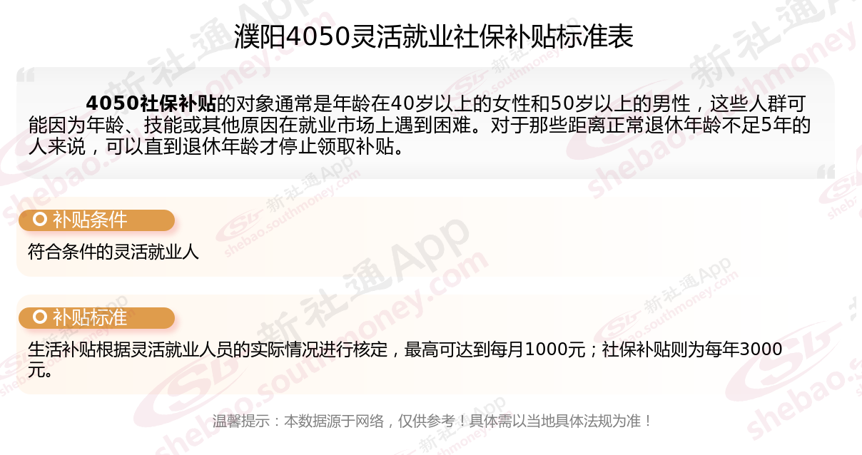 一、2025年濮阳4050社保补贴标准及条件是多少?