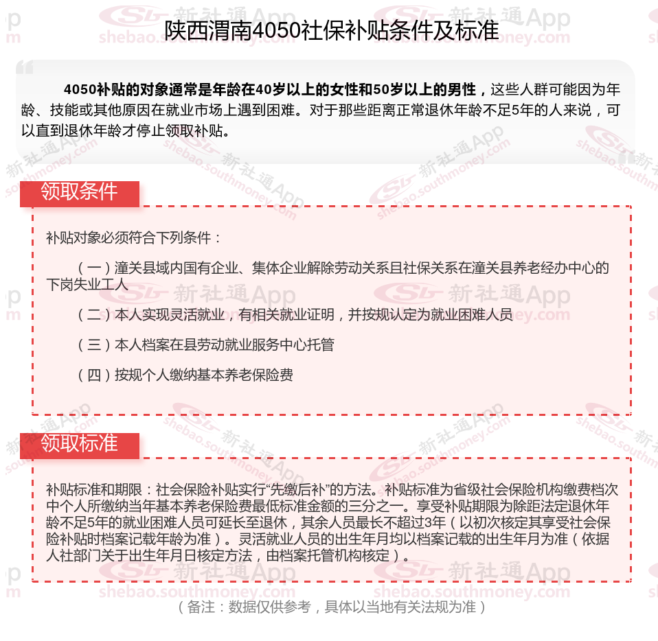 一、陕西渭南4050社保补贴标准及条件是多少?