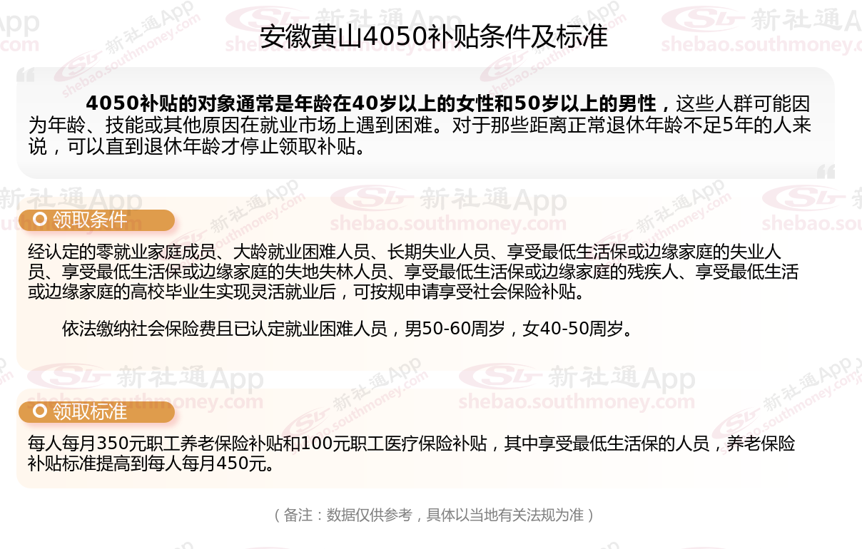 2025安徽黄山灵活就业4050社保补贴是一项面向特定年龄段的就业困难人群的社会保险补贴。