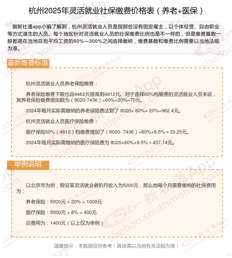 据新社通app数据显示,杭州灵活就业养老缴费基数明细如下: