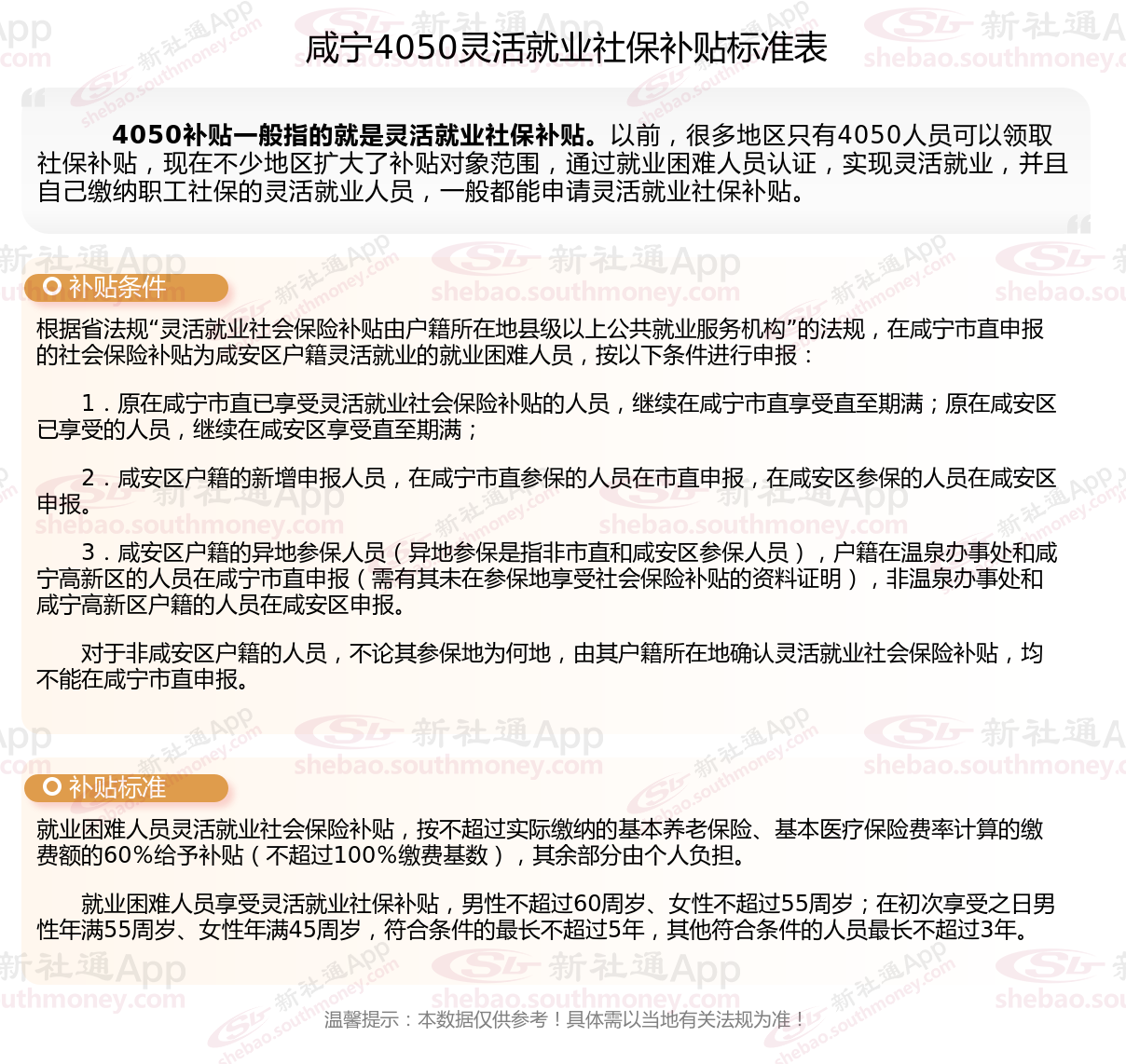 一、2023-2024年咸宁4050社保补贴标准及条件,最新如下