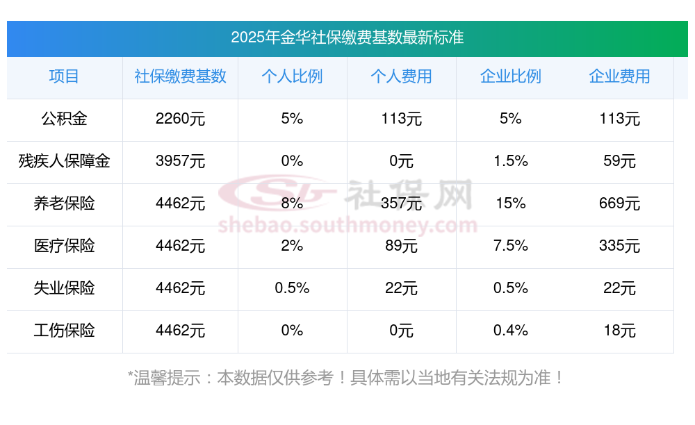 2025年金华社保缴费价格,2025年金华社保缴费多少钱?下表是2025年金华社保费用明细参考,新社通app-社保缴费查询工具提供的最新数据如下: