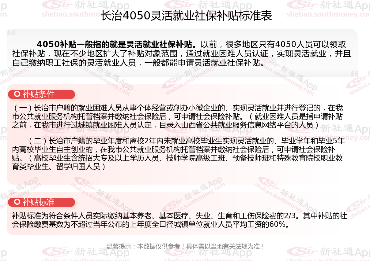 2025长治灵活就业4050社保补贴是一项面向特定年龄段的就业困难人群的社会保险补贴。