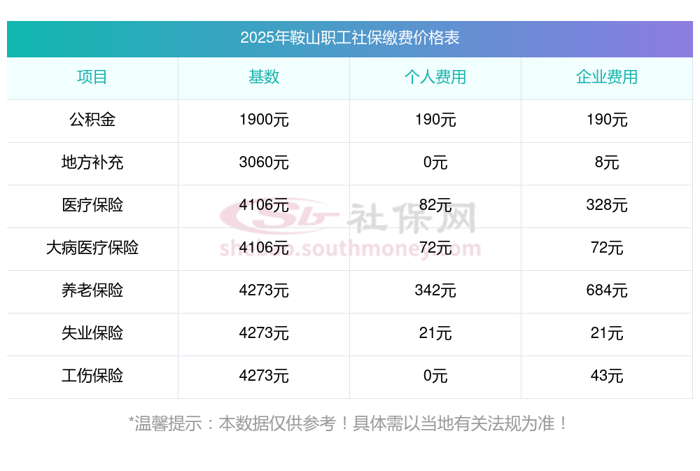 二、鞍山职工社保缴费多少钱一个月,2025年职工和公司社保各交多少钱?
