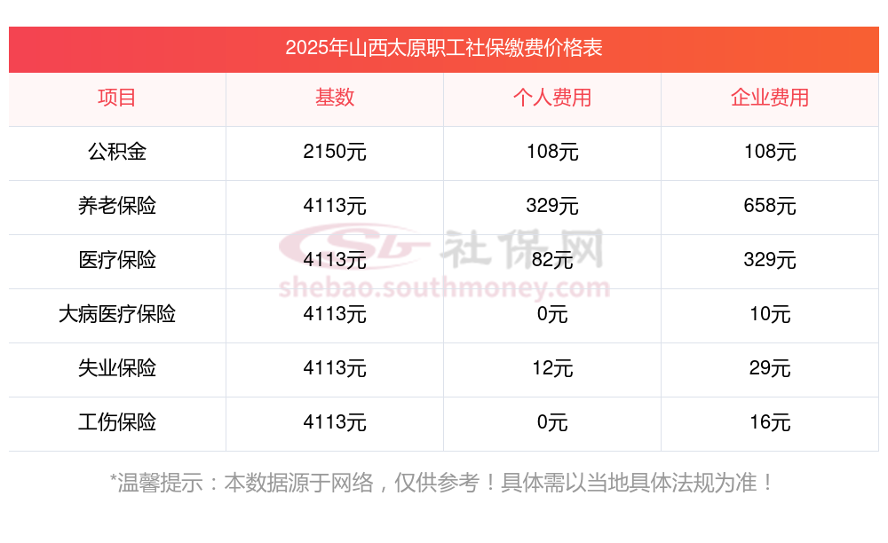 据新社通app小编了解到,2025年山西太原社保缴费基数参照为3579.00,山西太原社保缴费明细如下: