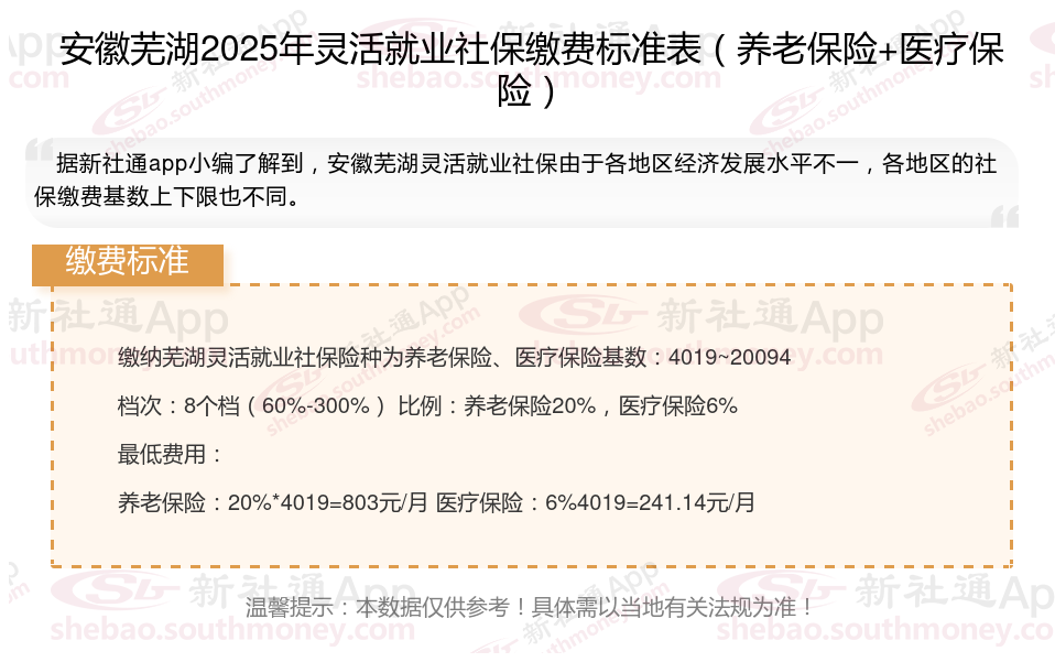 以上就是安徽芜湖灵活就业社保缴费的全部内容,数据及内容供参考!希望对你有帮助,欢迎关注新社通解锁更多社保专业资讯。