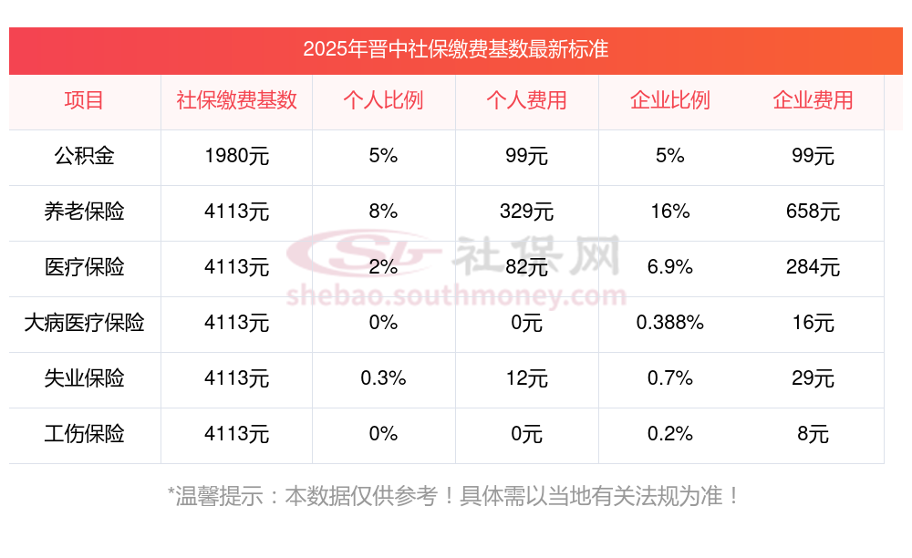 晋中社保缴费基数标准 2025年晋中社保是多少钱一个月?缴费基数、缴费比例以及当地的具体法规等因素相互作用,最终确定了社保的缴费金额。随新社通小编了解一下。