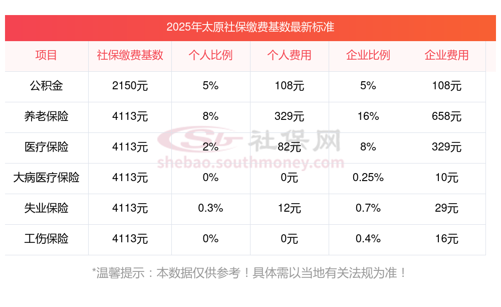 2024-2025年太原社保缴纳标准最新消息:据新社通app获悉,职工在正式上班并转正后,最重视的就是自己的福利待遇。特别是公司代为缴纳的五险一金,很多职工都会去查询五险一金的相关缴纳情况。用人单位是必须按照标准给职工缴纳社保。那么,太原职工社保缴费基数2024-2025年最新标准是多少,随新社通app小编一起来看看详情。