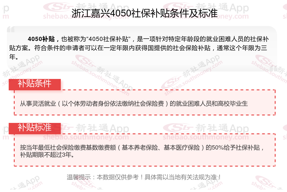 二、浙江嘉兴4050社保补贴新规2025年最新标准,2025年浙江嘉兴4050社保补贴条件是什么?