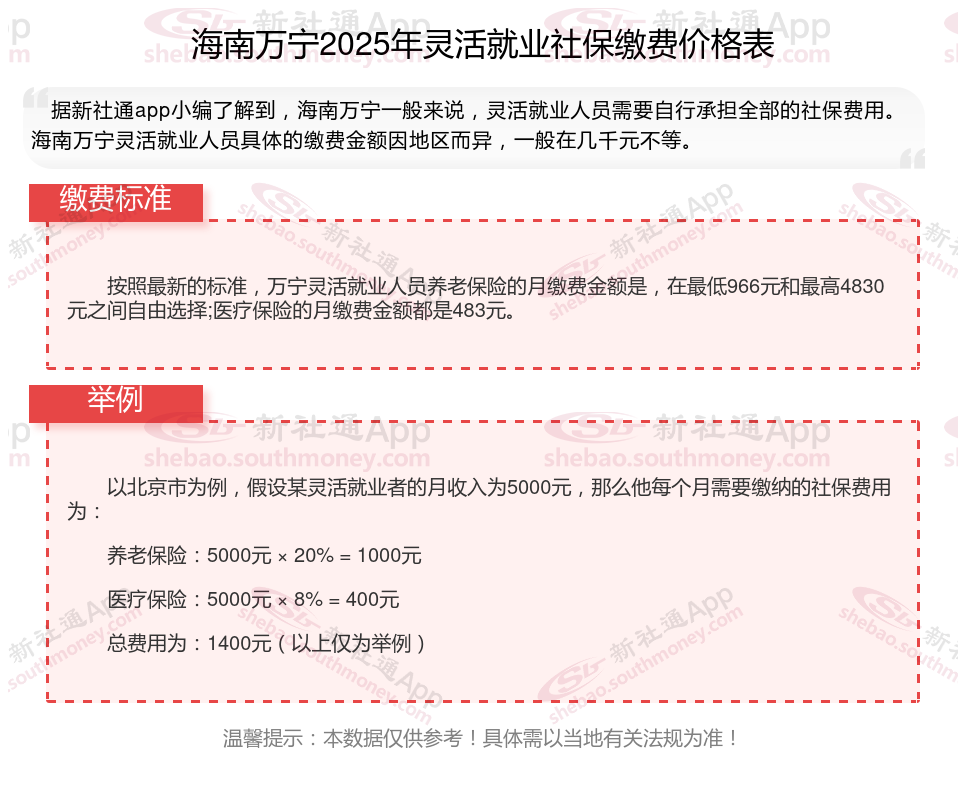 随着经济社会的不断发展,灵活就业群体日益壮大,其社保缴费问题也愈发受到关注。接下来随社保君了解一下2025年海南万宁灵活就业人员社保交多少钱的详细内容。