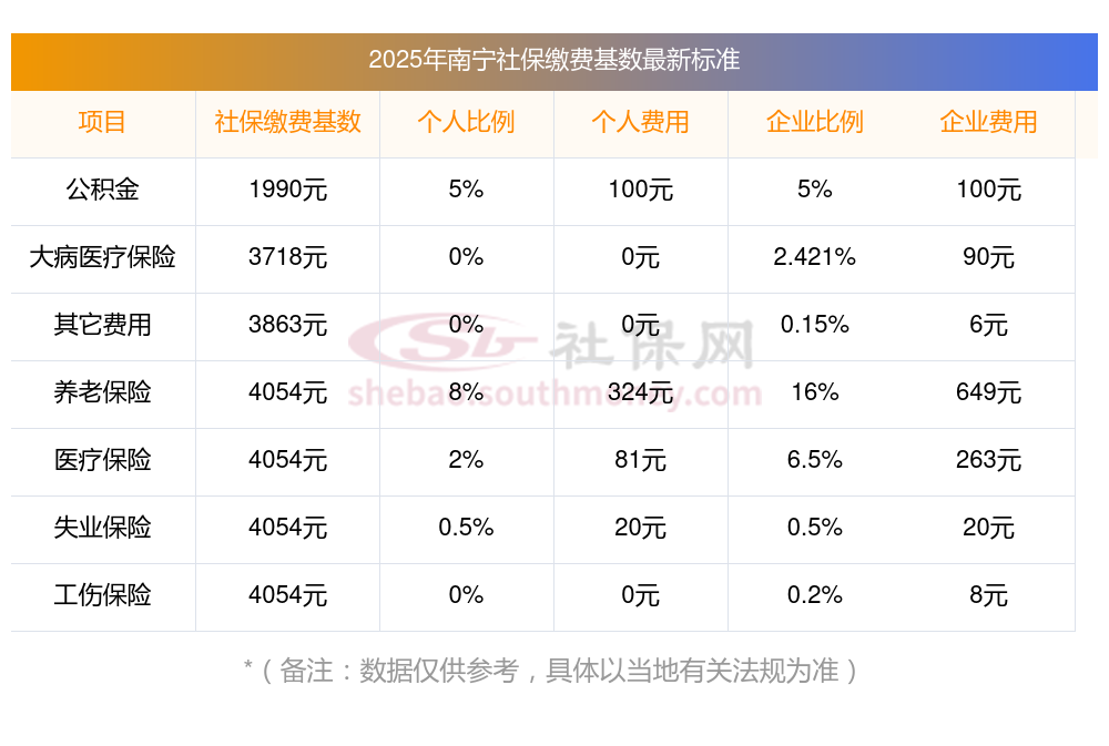 2025年南宁社保缴费标准个人交多少呢?确定社保缴费金额的要素有缴费基数、缴费比例,还有当地依据实际需求制定的具体法规。