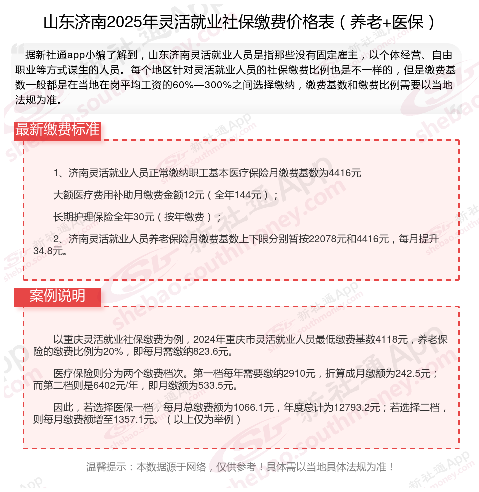 二、山东济南2024年灵活就业社保缴费基数、比例最新消息