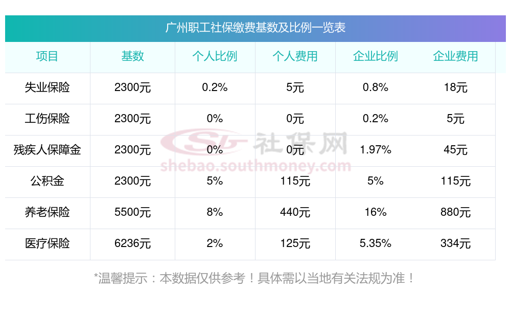 据新社通小编了解到,广州职工社保缴费基数为:5500.00,个人费用约为:440元,企业费用约为:880元。
