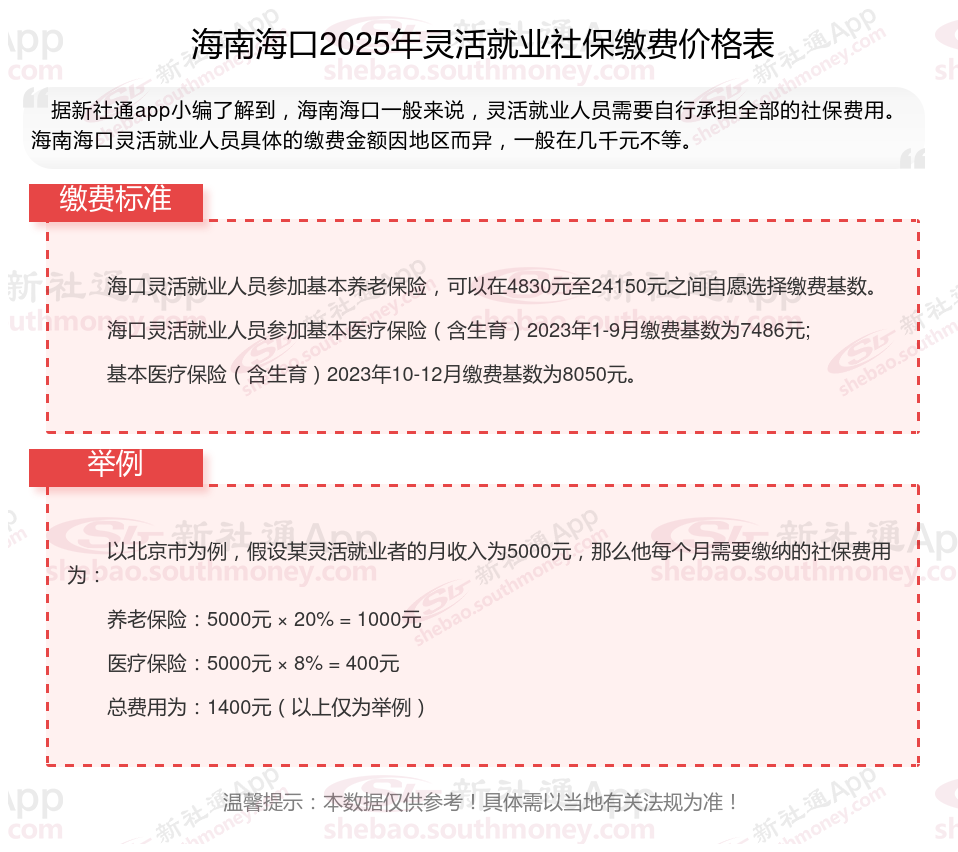 2025年海南海口灵活就业人员社保需要交多少钱?社保缴费的金额取决于多个因素,包括缴费基数和缴费比例,且各地标准存在差异。下面随新社通小编一起来看看。