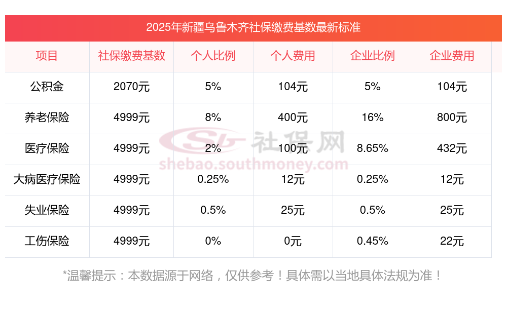 一、2025年新疆乌鲁木齐职工社保缴费基数是多少钱一个月?职工社保缴纳标准是多少?