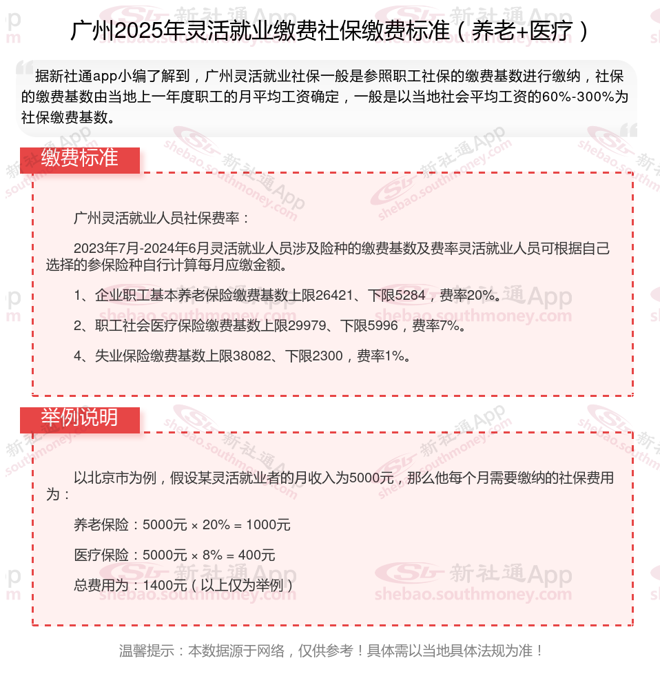 一、2024年广州灵活就业社保缴费基数、比例最新消息