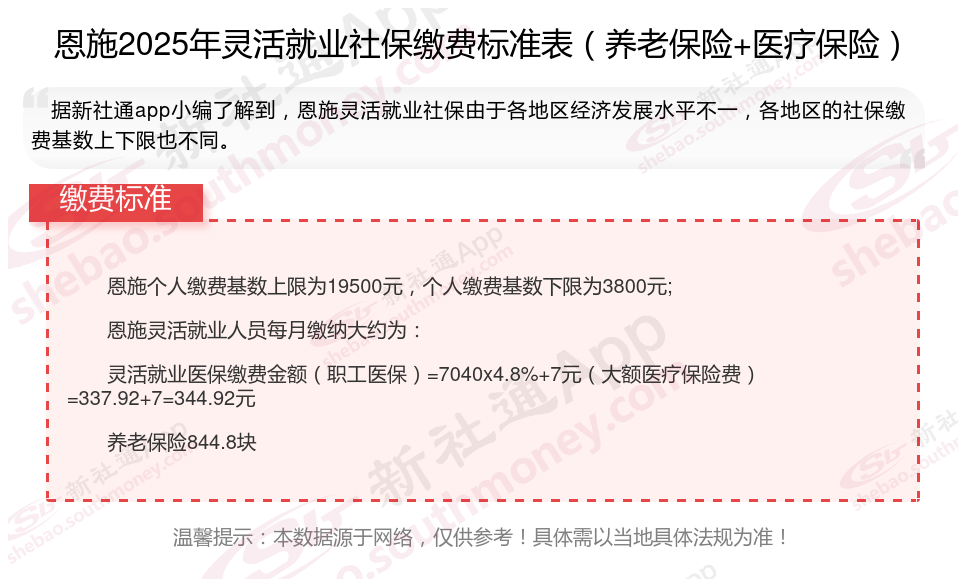二、恩施2024年灵活就业社保缴费基数及比例最新消息