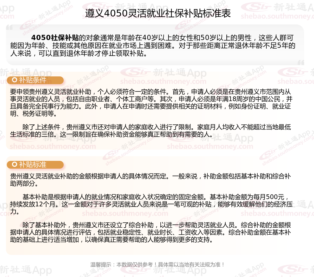 二、遵义4050社保补贴标准及条件2025年最新消息