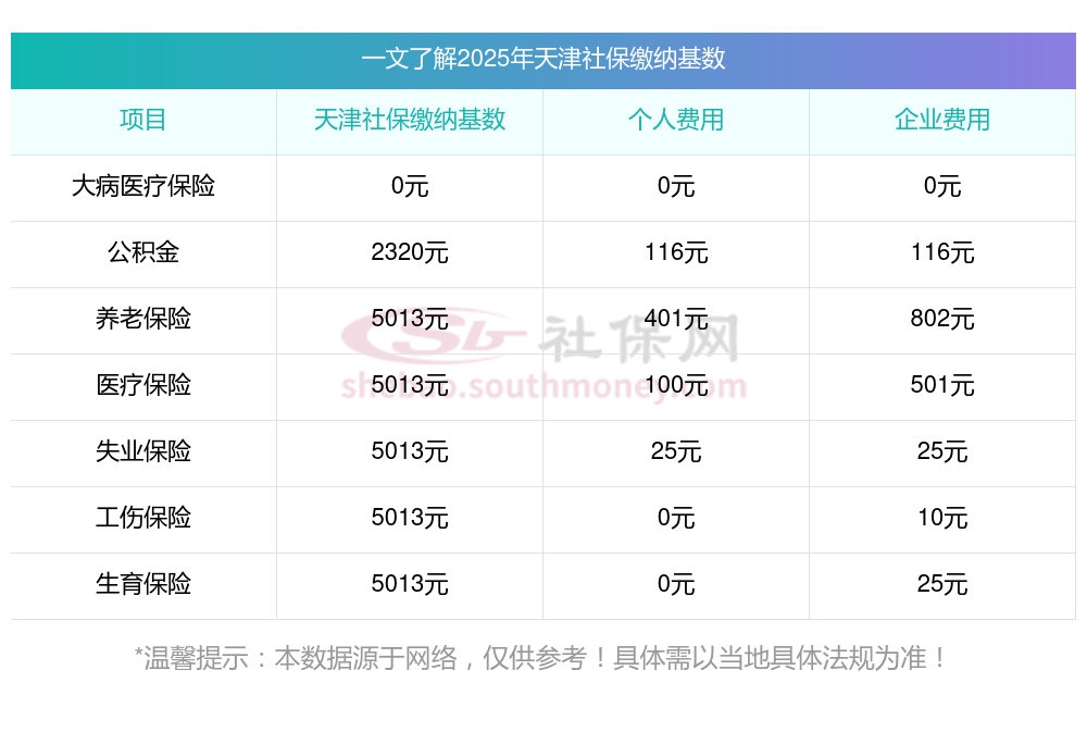 一、据新社通app-查阅了解到,职工上一年度1月至12月的所有工资性收入所得月平均额,用以确定社保基数,而社保基数用于计算缴纳社会保险费的工资基数。 目前该天津社保的缴费基数为:5013.00,个人费用约为:401.04元,企业费用约为:802.08元。
