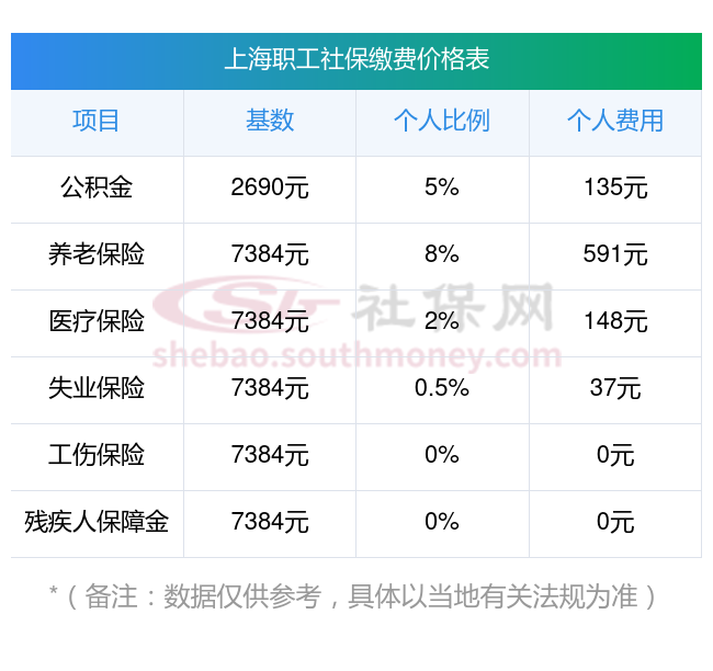 据新社通app小编获悉,职工社保个人缴费基数为:7384.00元。上海职工社保缴费的计算涉及各项社会保险费的月缴费金额,计算公式为:各项社会保险费的月缴费金额=Σ(职工各险种月缴费基数×各险种单位缴费比例+职工各险种月缴费基数×各险种个人缴费比例)。其中上海职工社保个人缴纳:590.72元,公司社保缴纳:1181.44元。