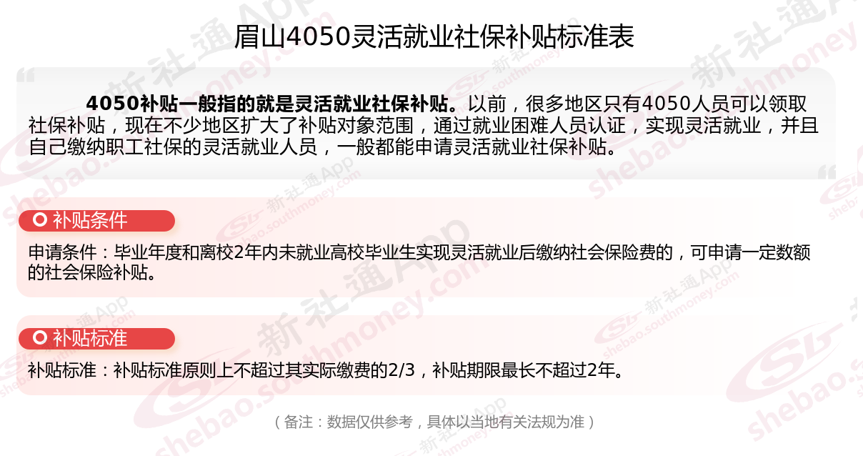 一、2025年眉山4050社保补贴标准,最新领取条件来了