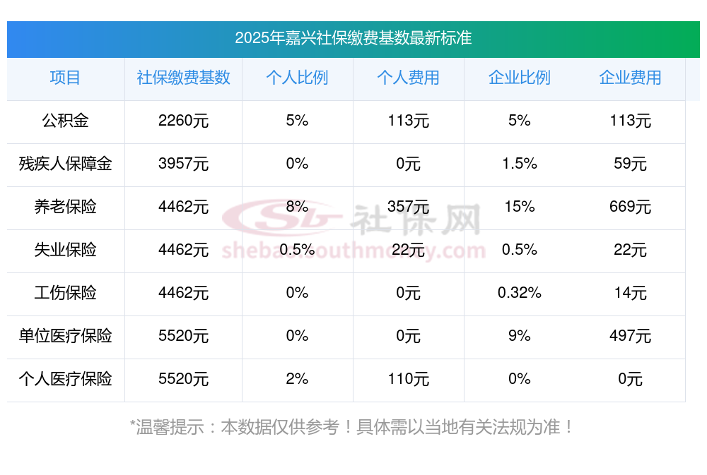 社保基数按职工上一年度1月至12月全部工资性收入所得月平均额来确定,确定的基数用于计算社会保险费缴纳的工资基数。那么,嘉兴社保个人缴费基数及标准比例,2025年嘉兴社会保险缴费多少钱呢?下面随新社通app小编一起来了解具体内容。