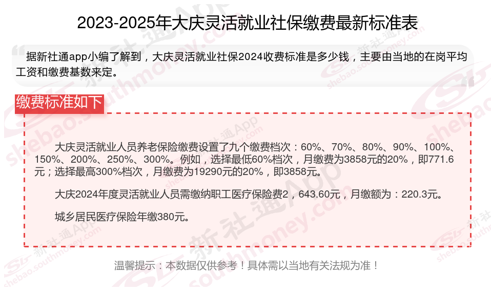 一、2024年大庆灵活就业社保缴费标准表 大庆灵活就业社保多少钱一个月?