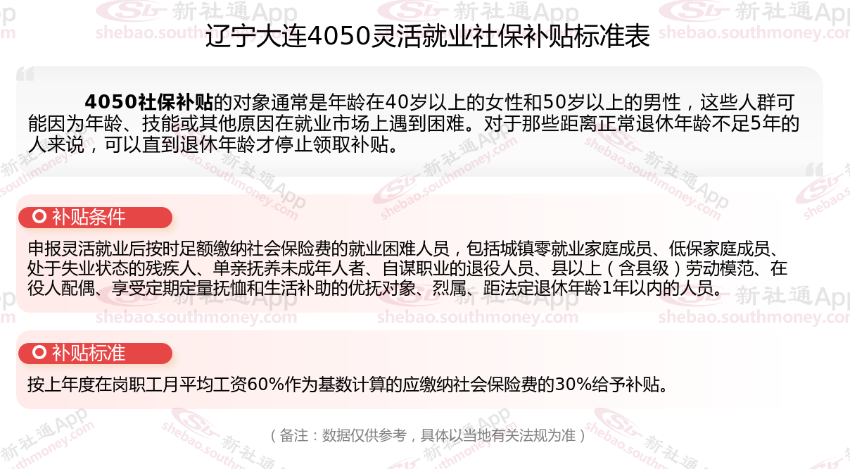 一、2025年辽宁大连灵活就业4050社保补贴标准最新是多少?