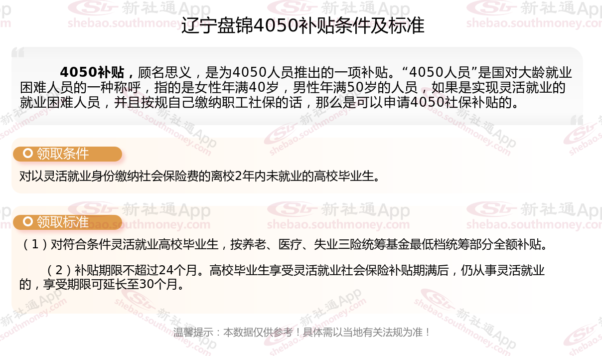 二、辽宁盘锦4050社保补贴新规2025年最新标准,2025年辽宁盘锦4050社保补贴条件是什么?