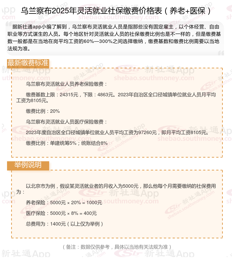 二、乌兰察布2024年灵活就业社保缴费基数、比例最新消息