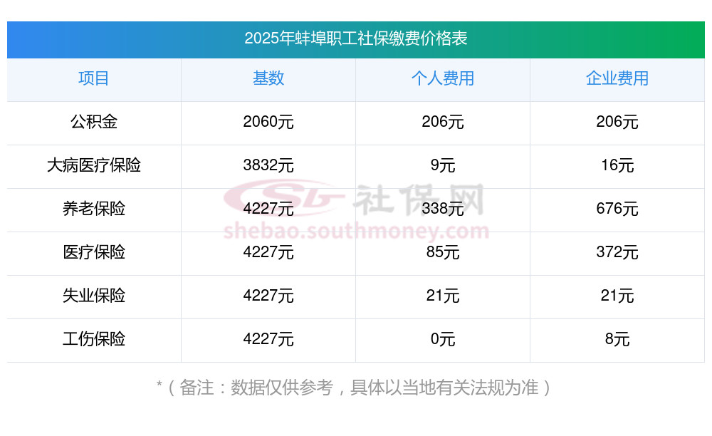 职工社保缴纳和待遇是怎么样的?2025年蚌埠社保缴费标准有变?据新社通app获悉:蚌埠企业职工社保缴费基数为:3579.00元。
