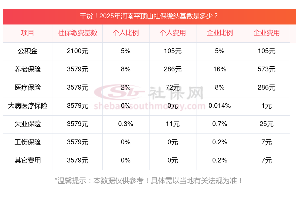 2025年河南平顶山职工社保缴费基数是多少钱一个月?职工社保缴纳标准是多少?