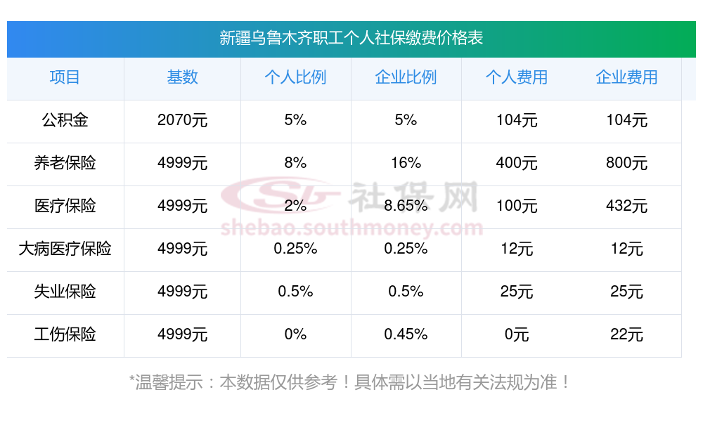 一、新疆乌鲁木齐职工社保缴费多少钱一个月,2025年职工和公司社保各交多少钱?