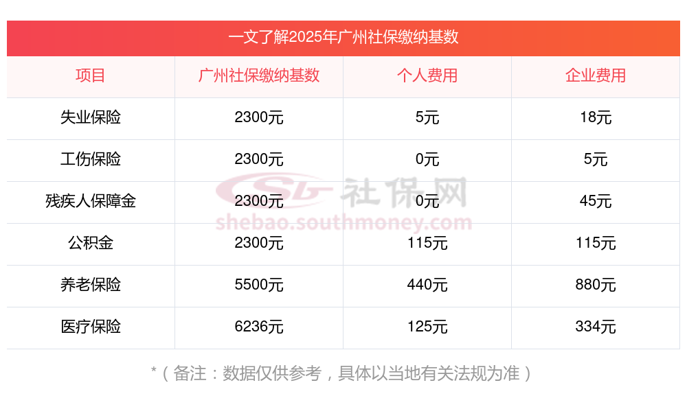 (1)据新社通app-查阅了解到,社保基数是根据职工上一年1月至12月所有工资性收入所得的月平均额而定,其用于计算缴纳社会保险费的工资基数。 目前该广州社保的缴费基数为:5500.00,个人费用约为:440元,企业费用约为:880元。