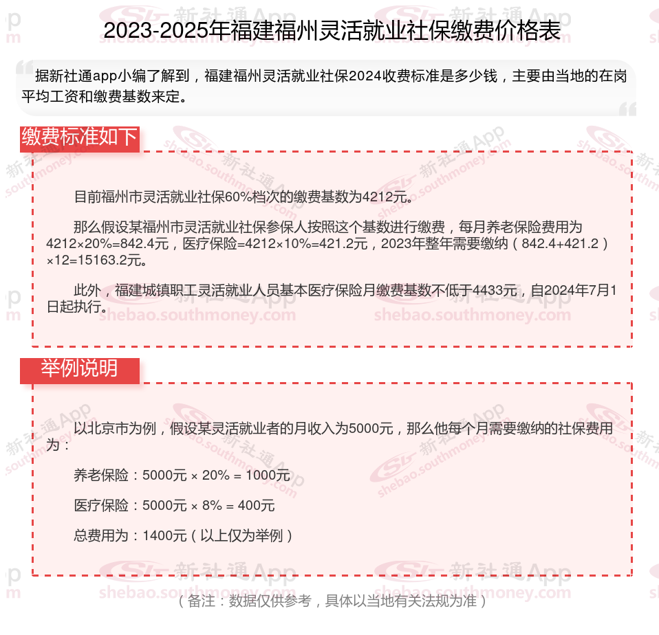 目前福州市灵活就业社保60%档次的缴费基数为4212元。