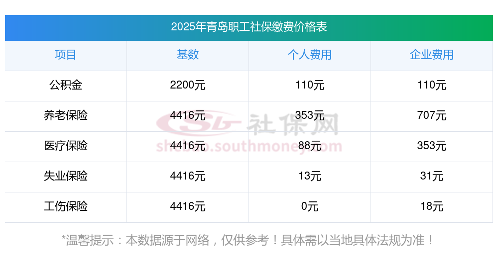 据新社通app显示,青岛社保缴费基数2025年标准,(社保最低一个月要交多少钱)青岛社保费用如下: