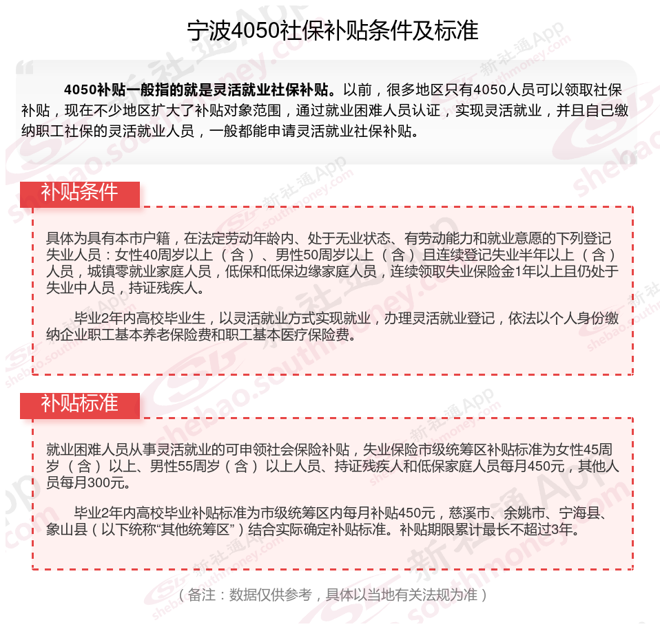 二、宁波4050社保补贴标准及条件2025年最新消息