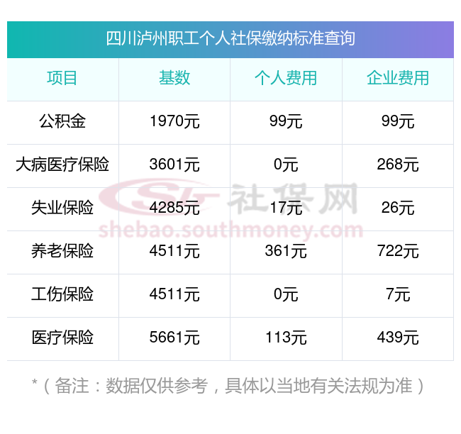 据新社通app显示,四川泸州社保公积金缴费基数为:3579.00元,个人比例:0.08。