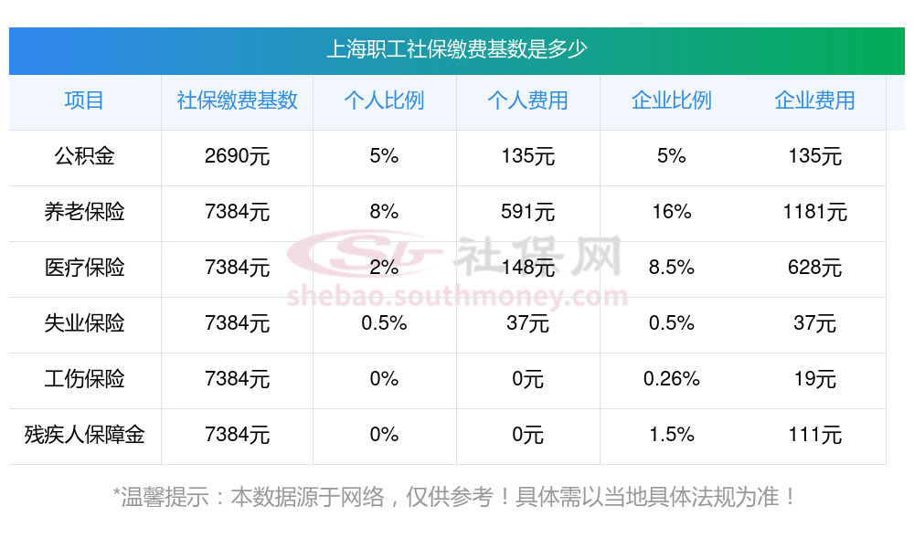 一、上海职工社保缴费基数是多少钱一个月?职工社保缴纳标准
