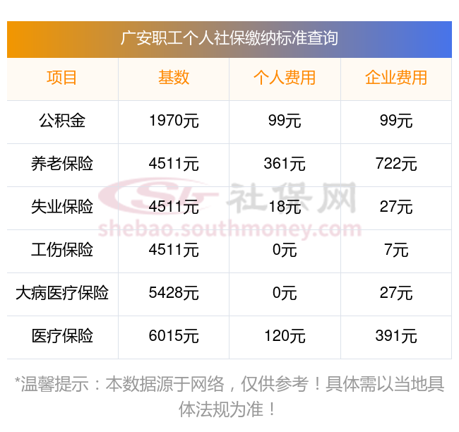 2025年广安社保需要交多少钱?社保缴纳费用是根据个人的缴费基数和缴费比例来计算的。广安社保养老保险基数为:4511.00。接下来随新社通APP小编一起来看看广安社保缴费多少的内容。