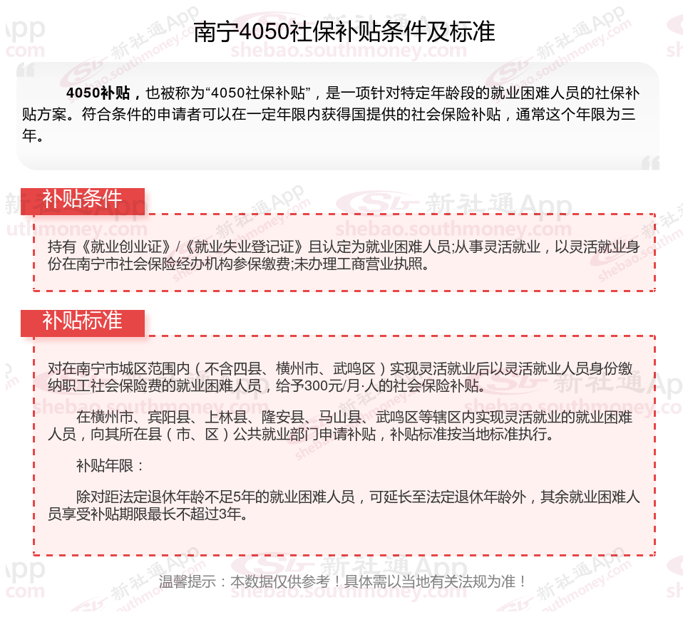 一、2025年南宁4050社保补贴标准,最新领取条件来了