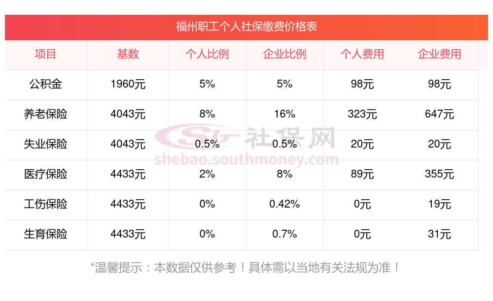 据新社通app小编了解,2025年福州社保缴费基数参照为3579.00,福州社保最低一个月要交多少钱?如下: